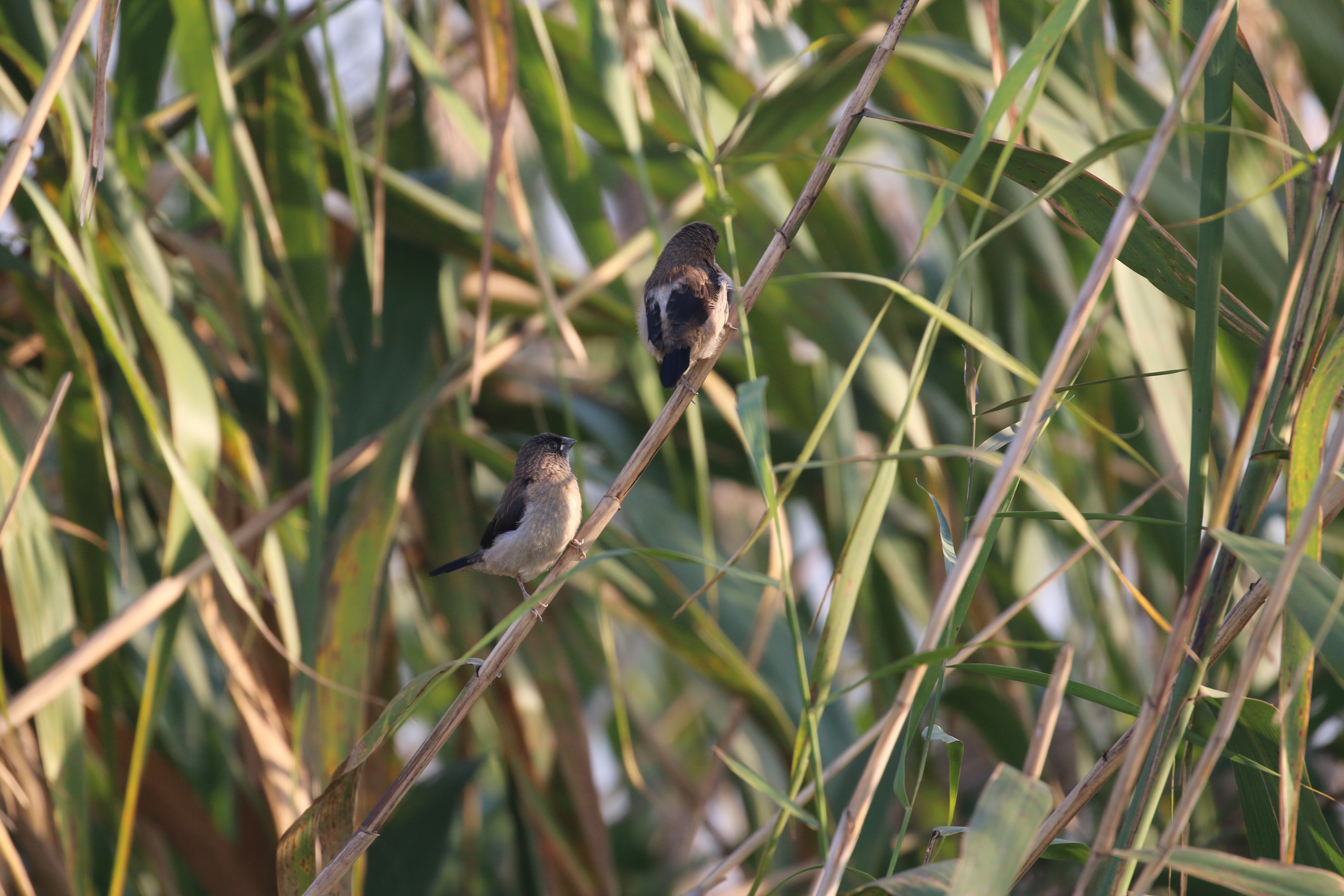 白腰文鸟像一颗会动的“小绒球”,体型仅10厘米左右,圆滚滚的身子透着憨态。背部和翅膀是温暖的棕褐色,腹部覆盖着柔软的灰白色绒毛,最亮眼的是腰部那道雪白的横纹——仿佛系了一条精致的白色腰带,这也是它名字的由来。短粗的圆锥形嘴巴适合啄食种子,黑亮的小眼睛滴溜溜转,像两颗嵌在绒球上的黑宝石。白腰文鸟永远成群结队,在灌木丛中互相追逐、梳理羽毛,发出“啾啾啾”的短促叫声,像一串轻快的风铃,主食杂草种子、谷物,也爱吃蚜虫、蚂蚁等小害虫,是公园生态的“天然清洁工”。