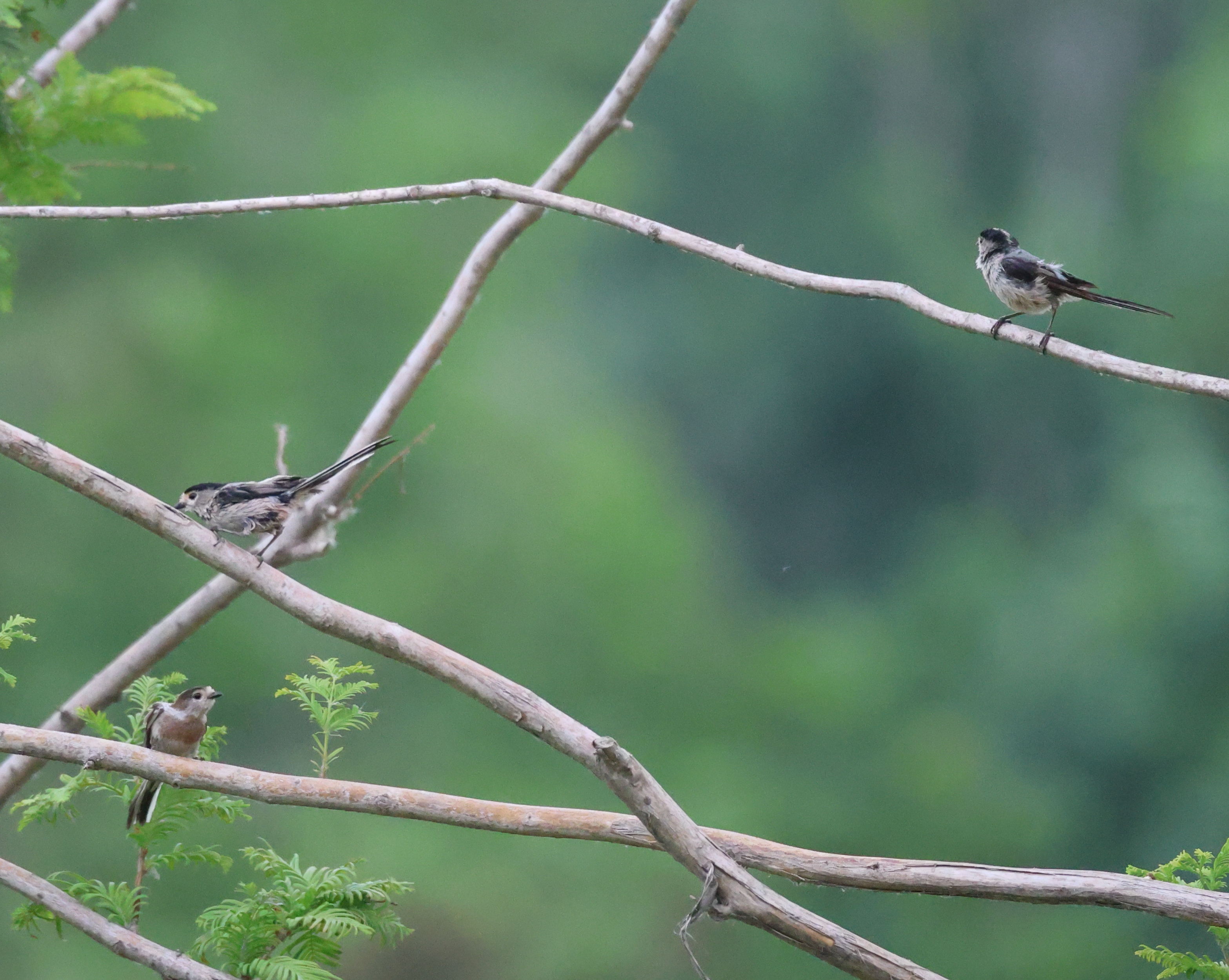 银喉长尾山雀体型迷你(体长约10cm),羽毛蓬松如绒球,仿佛自带“保暖外套”。背部呈柔和的灰褐色,腹部洁白,喉部有一块标志性的银白色斑块,尾羽细长,占体长一半,飞行时像一把小扇子。因其圆胖的外形,被鸟友亲切称为“小肥啾”,走路时一颠一颠,萌度爆表!冬季常结成10-20只的小群活动,互相取暖;以昆虫幼虫、蜘蛛为主要食物,冬季也啄食植物种子。喜欢在树枝间跳跃,听到细碎的“吱吱”叫声时,抬头往树枝顶端看——它们常躲在叶丛中,需耐心观察。